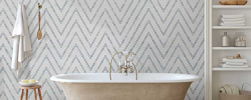 The Azula Mosaic Tile Collection offers a range of patterns, featuring a striking blue accent that adds just the right touch of intrigue to any area you install it in. You can select from options like a timeless hexagon mosaic, a basket weave design, a hatch work style, or the lovely Azula floret. Whichever option you choose, it will look fantastic in any location.