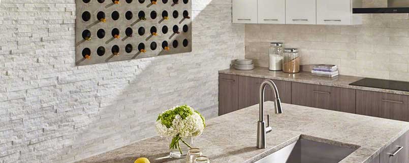 Stacked stone consists of trimmed pieces of natural stone assembled into modular veneer panels, facilitating a smooth installation process. We offer these stone panels in two styles: natural stone ledger stepped panels and “L” ledger stepped panel corners for exterior corners. Stacked stone panels can be used outdoors to enhance the façade of a home or to highlight a barbecue island, as well as indoors for kitchen backsplashes or to beautify interior walls.