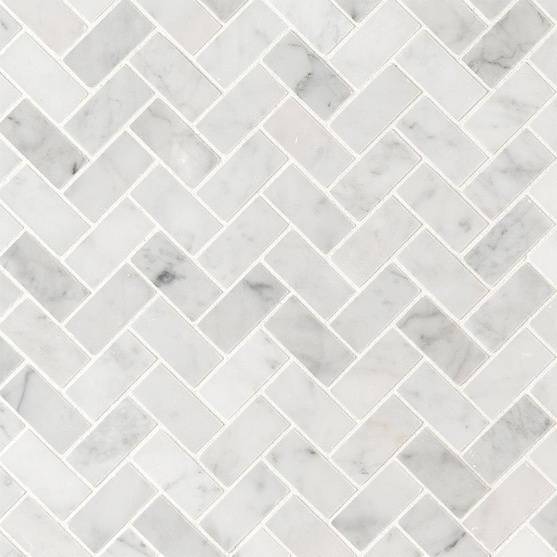 CARRARA WHITE 1X2 HERRINGBONE HONED