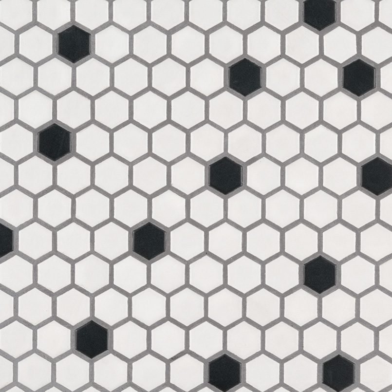 BLACK AND WHITE 1″ HEXAGON MATTE